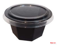 —Банка 0,5 л суповая восьмигранная d-125 h-70 ПП чёрная с прозрачной крышкой/450