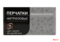 —Перчатки чёрные нитриловые М смотровые нестерильные текстиль на пальцах 50 пар