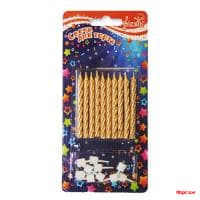 Свеча для торта витые ЗОЛОТО с подставкой 6 см 10 шт