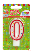 Свеча-цифра красное ассорти "0" 7,5 см/12