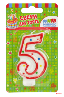 Свеча-цифра красное ассорти "5" 7,5 см/12